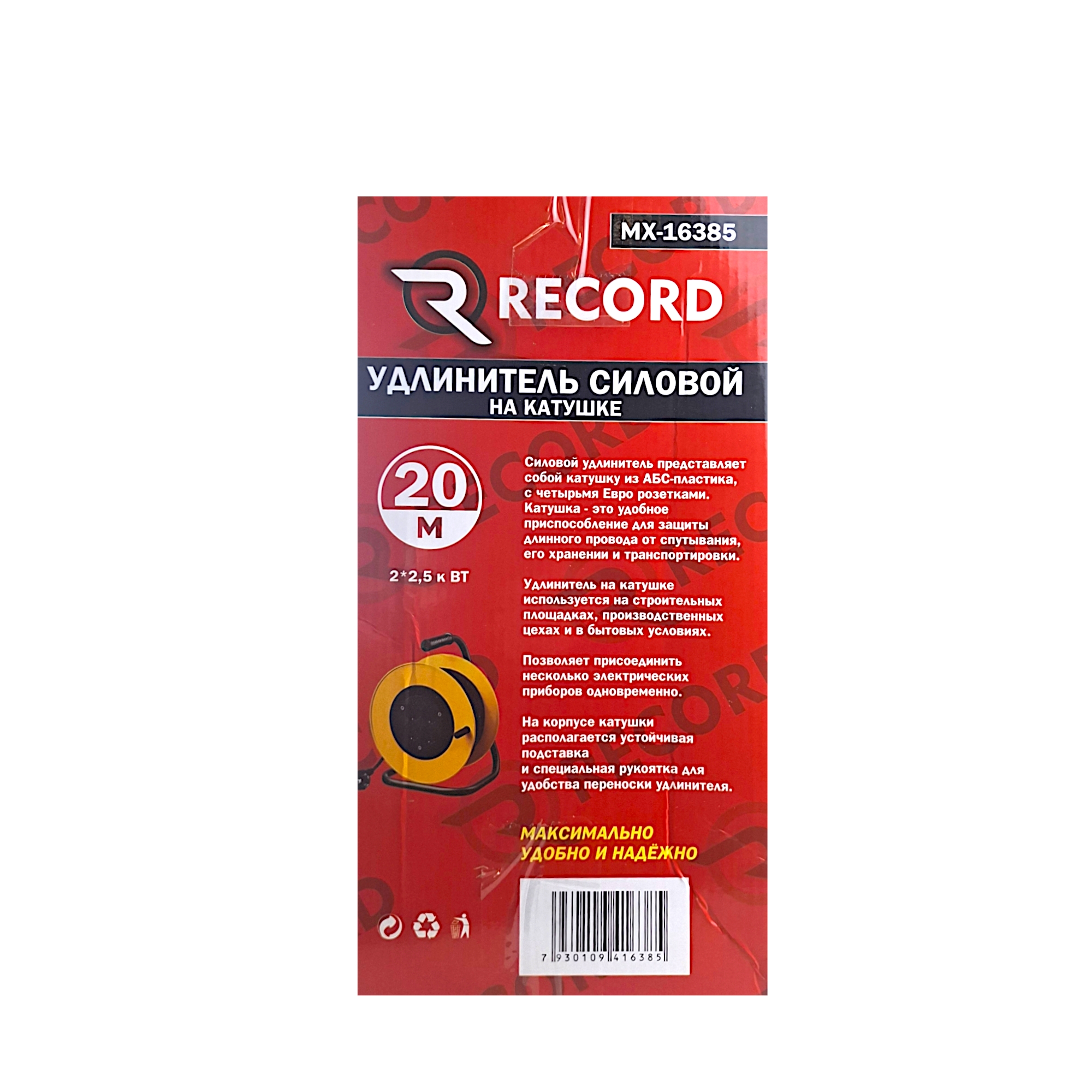 Силовой удлинитель на пластиковой ABS катушке 20 метров Record MX 16385 создан для профессиональной эксплуатации в тяжелых условиях. Благодаря 20-метровому кабелю вы получаете полную свободу действий на стройплощадке, в цеху, гараже или при работе во дворе.